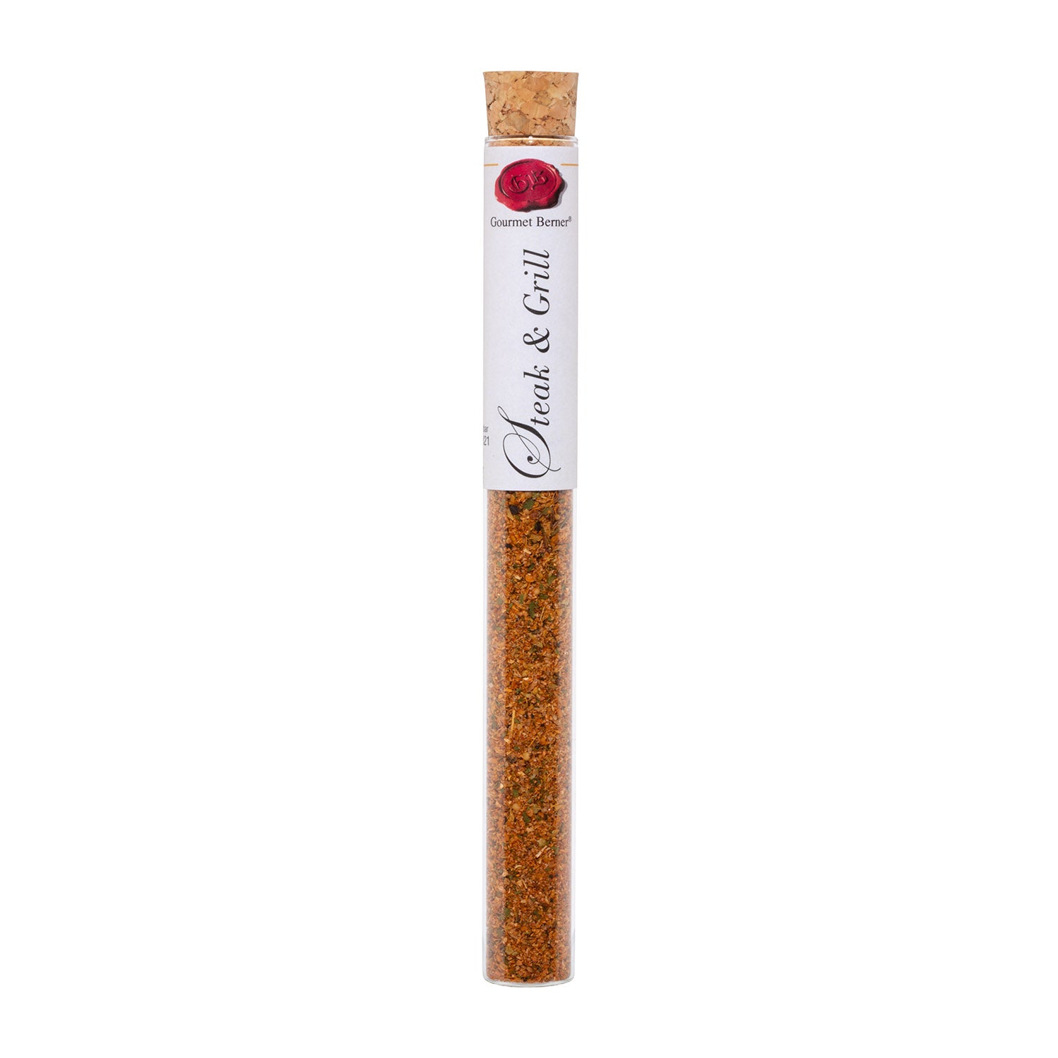 "Im Glas verpackt" steht Gourmet Berner Artikeln ganz besonders, da gerade Farbe und Form der Produkte Appetit machen. So werden die Gewürze, Dips und Tees in ansprechende Reagenzgläser gefüllt und mit schönen Naturkorken verschlossen.